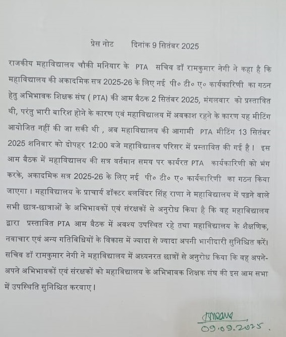 Government Degree College Chowki Maniar District- Una(H.P)